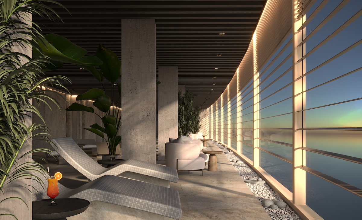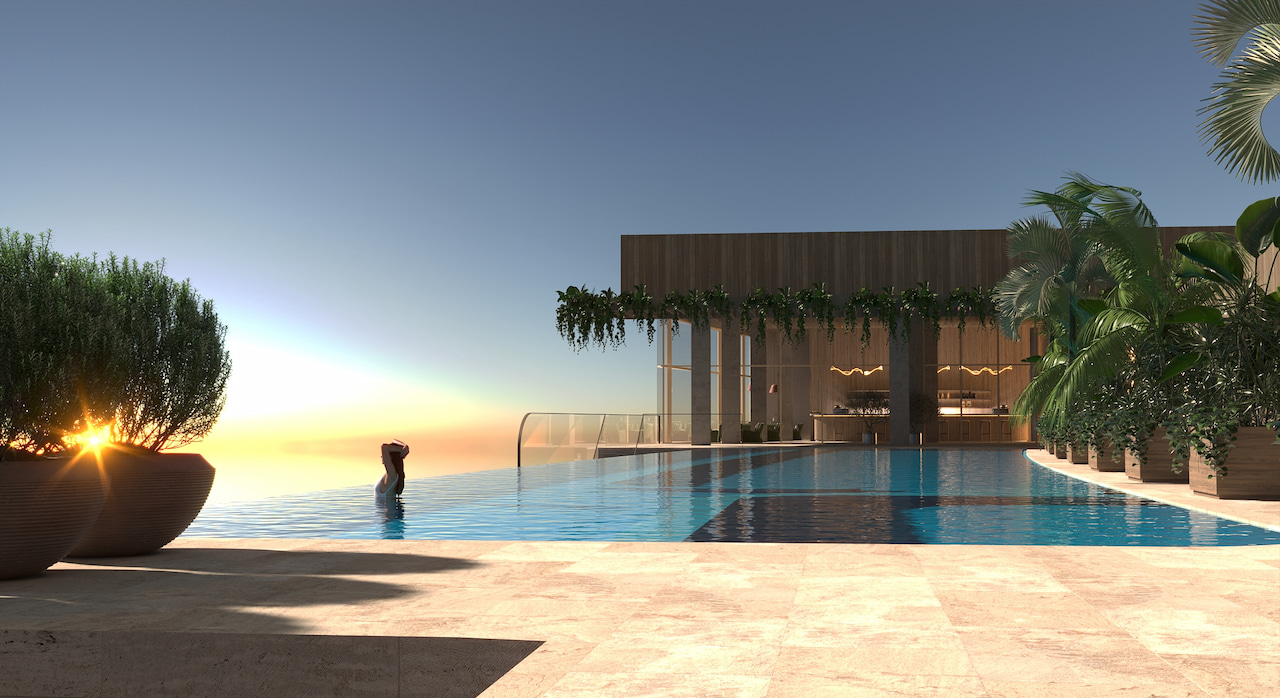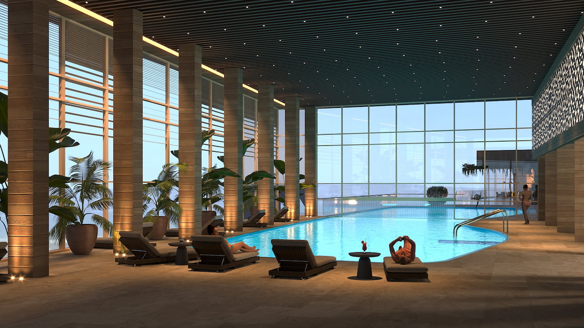 Подогреваемые бассейны на 7 этаже работают 365 дней, купайтесь над линией горизонта с бескрайним видом на море.