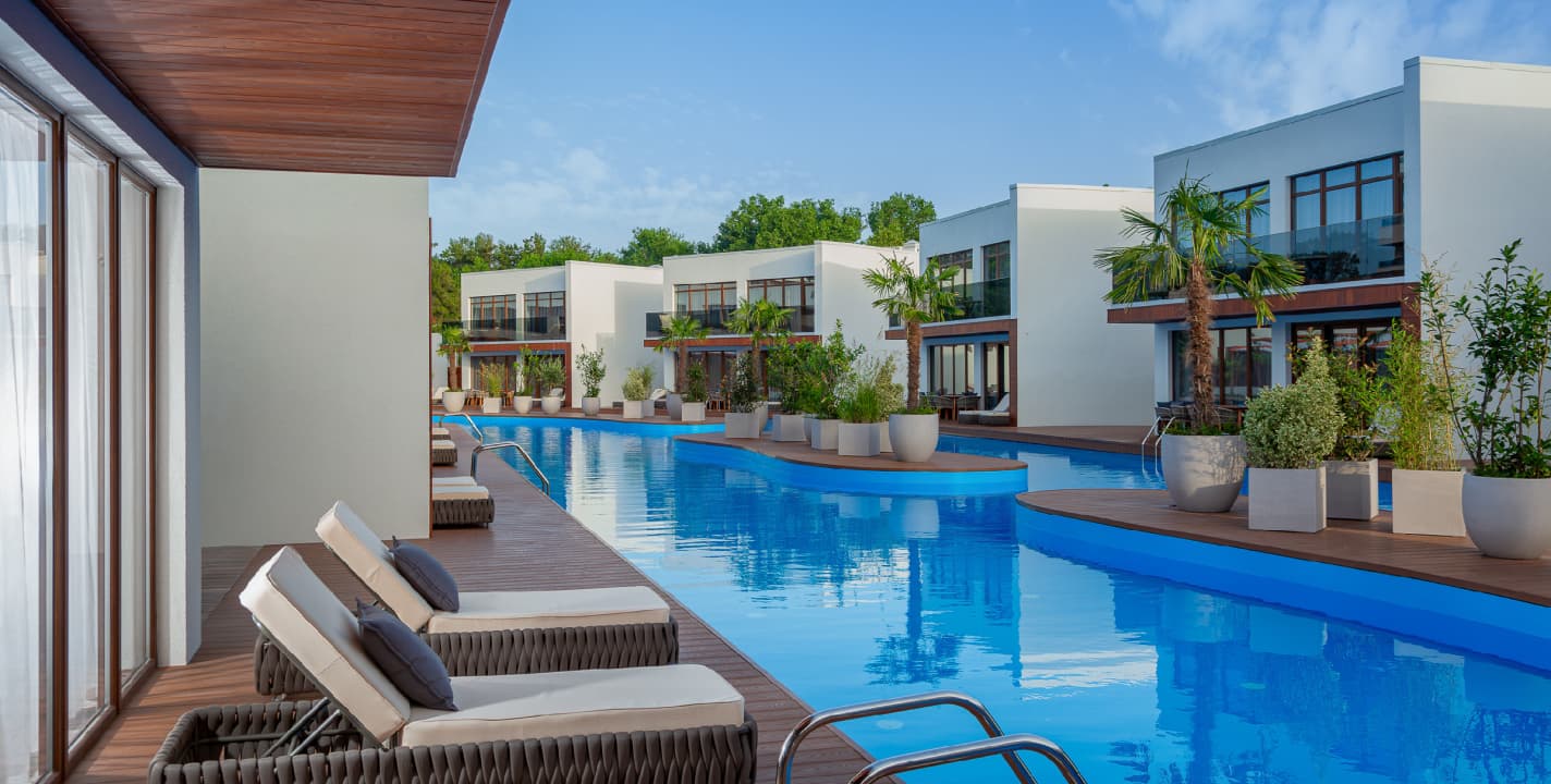 - SPA-комплекс с крытым и открытыми бассейнами, массажными кабинетами и термальной зоной;